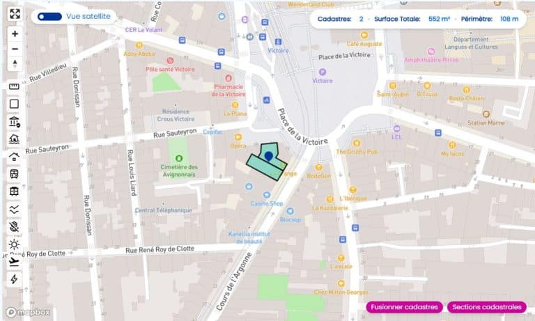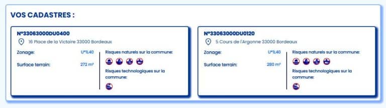 - Affichage instantané des informations cadastrales : surface exacte, zonage, périmètre précis